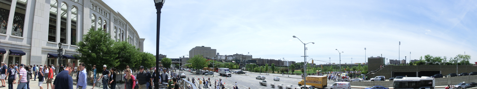 Yankees-Stadium: Panoramaaufnahme vor dem Baseball Stadion der New York Yankees in der Bronx